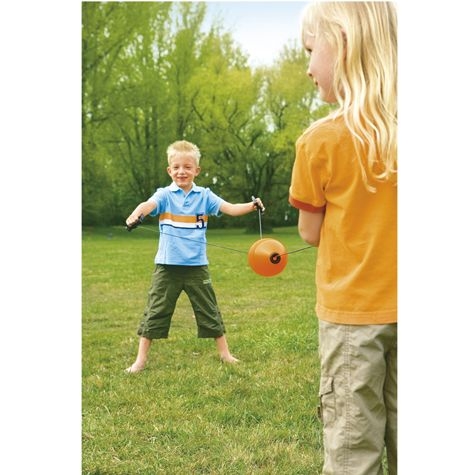 Da sind Reaktionsvermögen, Ausdauer und Kraft gefragt. Zwei Spieler halten mit je zwei Griffen die Seile auf Spannung. Durch schnelles Auseinanderziehen der Seile schnellt der Footballförmige Kunststoff-Ball zum anderen Spieler. Dieser muss sofort reagieren und die geschlossenen Arme schnell auseinander ziehen.
