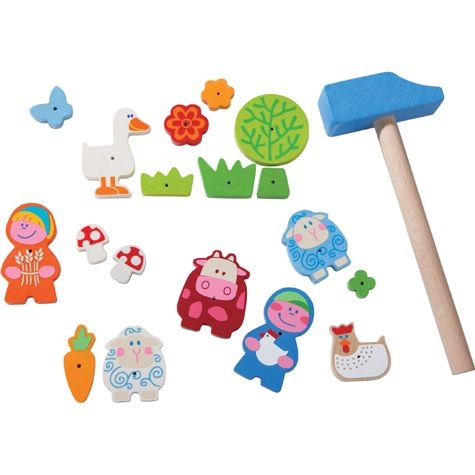 HABA Nagelspiel Muh & Mäh Inklusive Korkplatte, Holzhammer, Nägel. 45 Teile. Holztäfelchen 3 mm stark. ab 3 Jahre