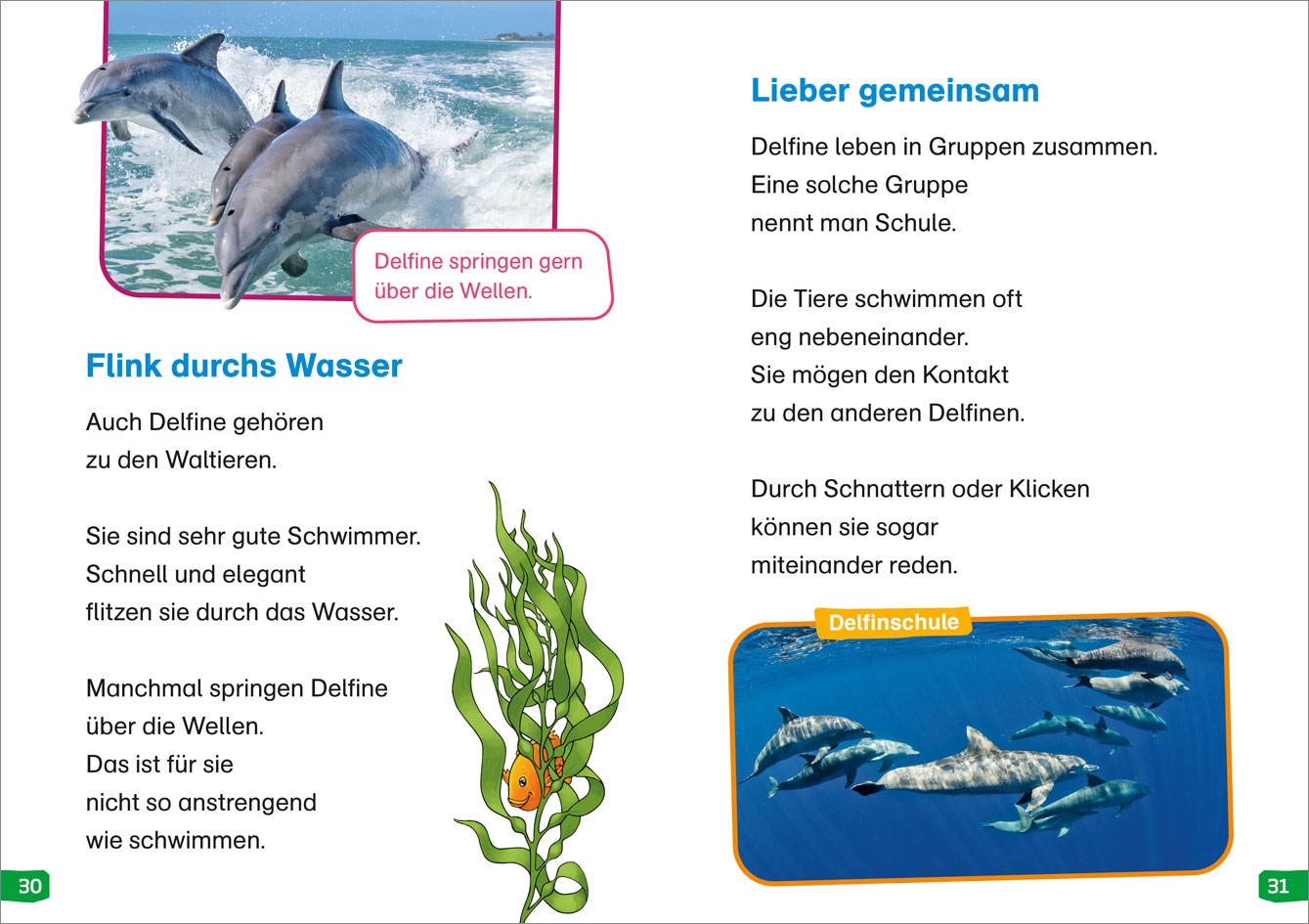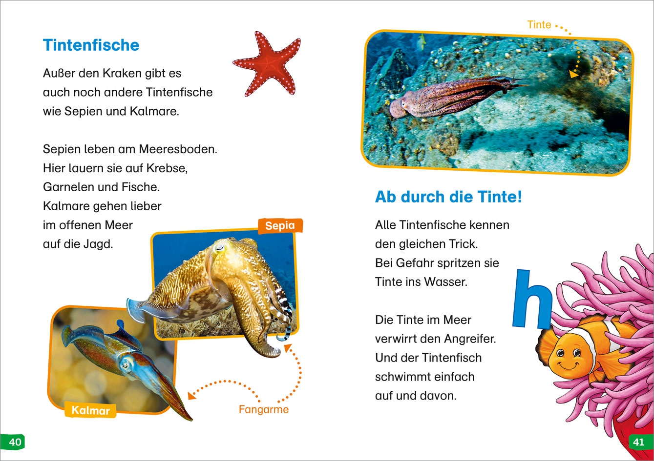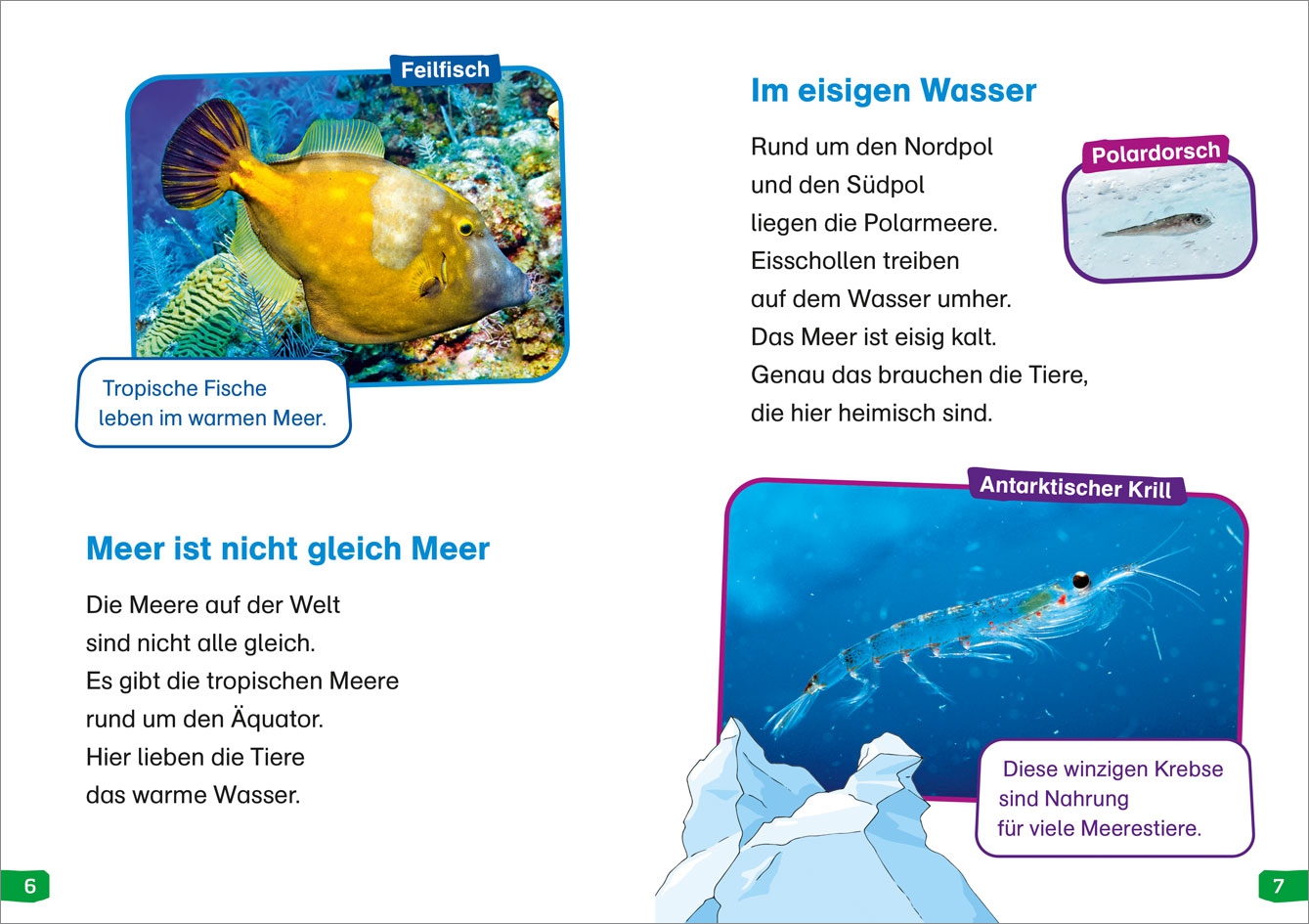 Viele Fotos und kleine Lesequiz sorgen für Abwechslung und helfen beim Textverständnis. So können auch schon Erstklässler lesend die Wunder der Weltmeere kennenlernen!