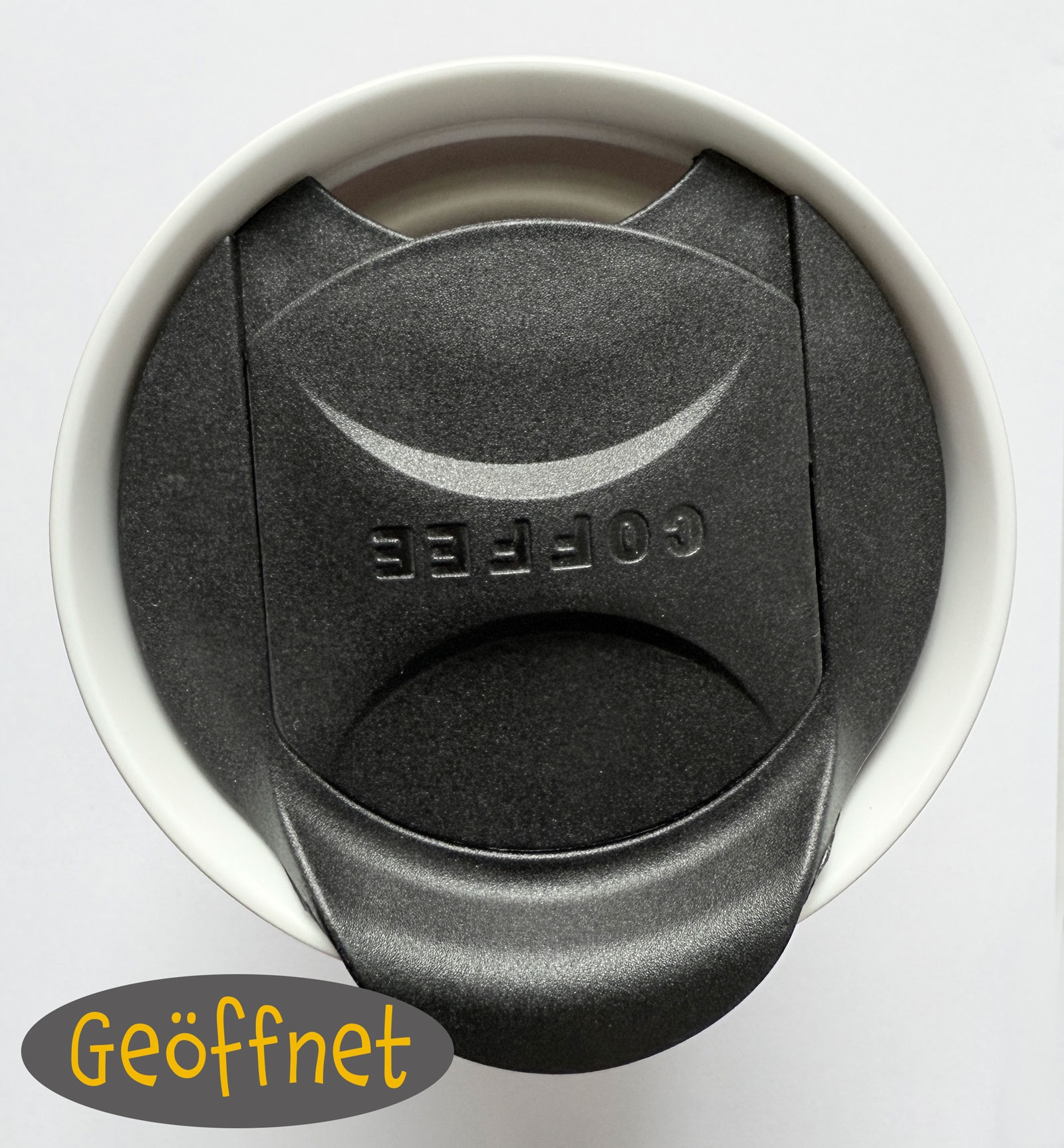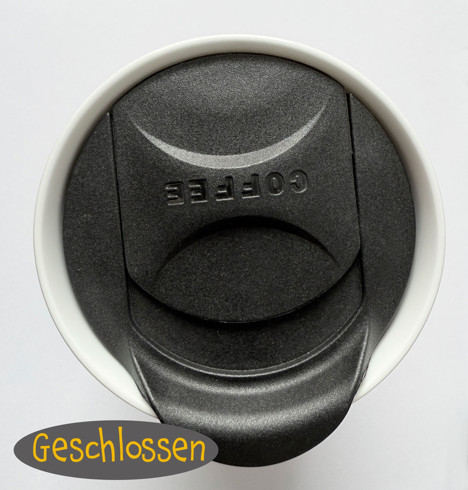 Der perfekt schließende dicke Deckel hält Ihren Kaffee lange heiß und mithilfe eines praktischen Schiebemechanismus lässt er sich zu einer Trinköffnung verändern. Natürlich kann man auch Tee daraus trinken, Säfte, Milch usw.