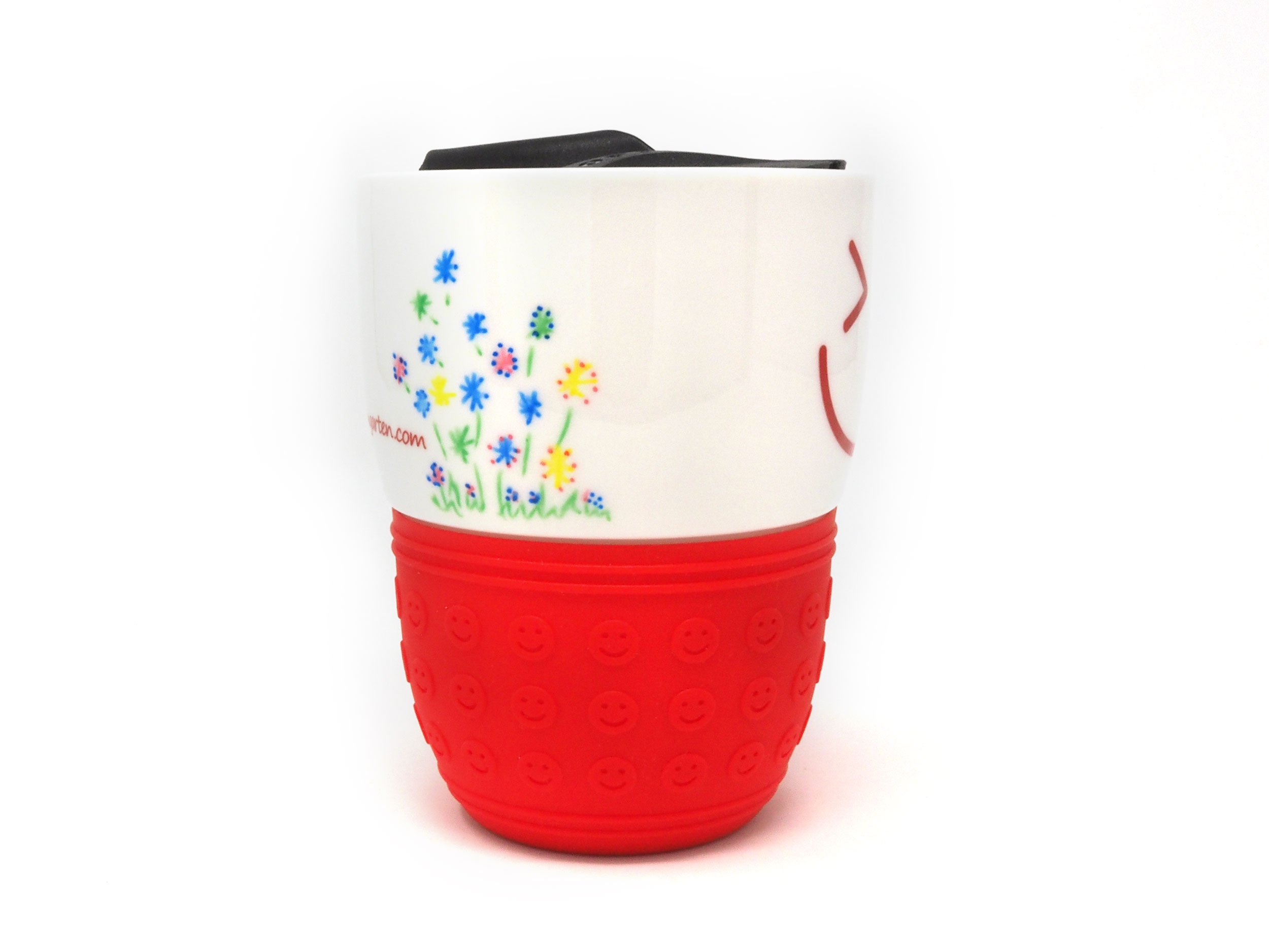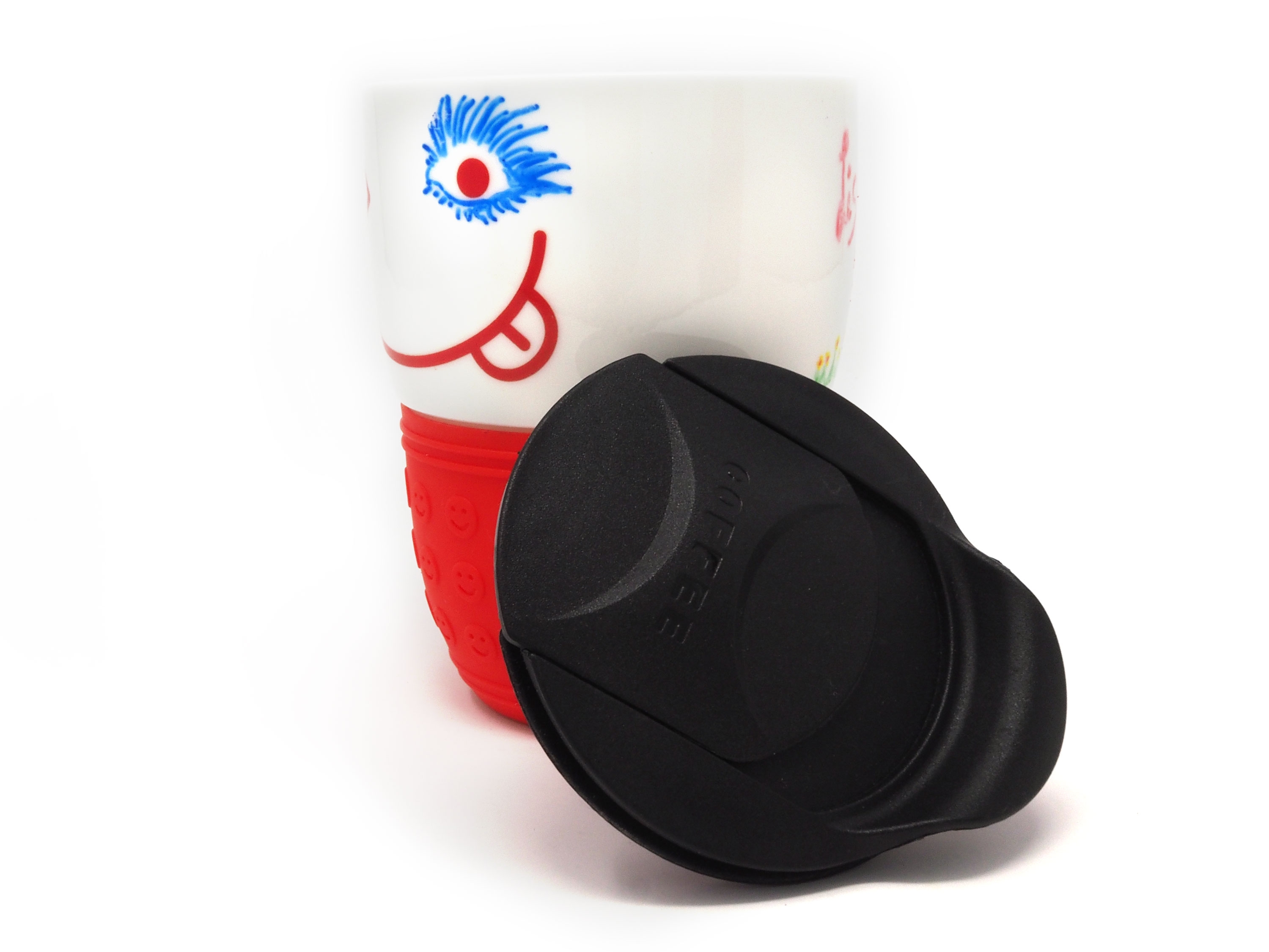 Zwinki ist die ideale Kaffeetasse an jedem Arbeitsplatz! Sie ist äußerst standfest dank des abziehbaren, stabilen Silikonformmantels unten an der Tasse, die zudem dafür sorgt, dass Sie sich die Finger nicht verbrennen können.
